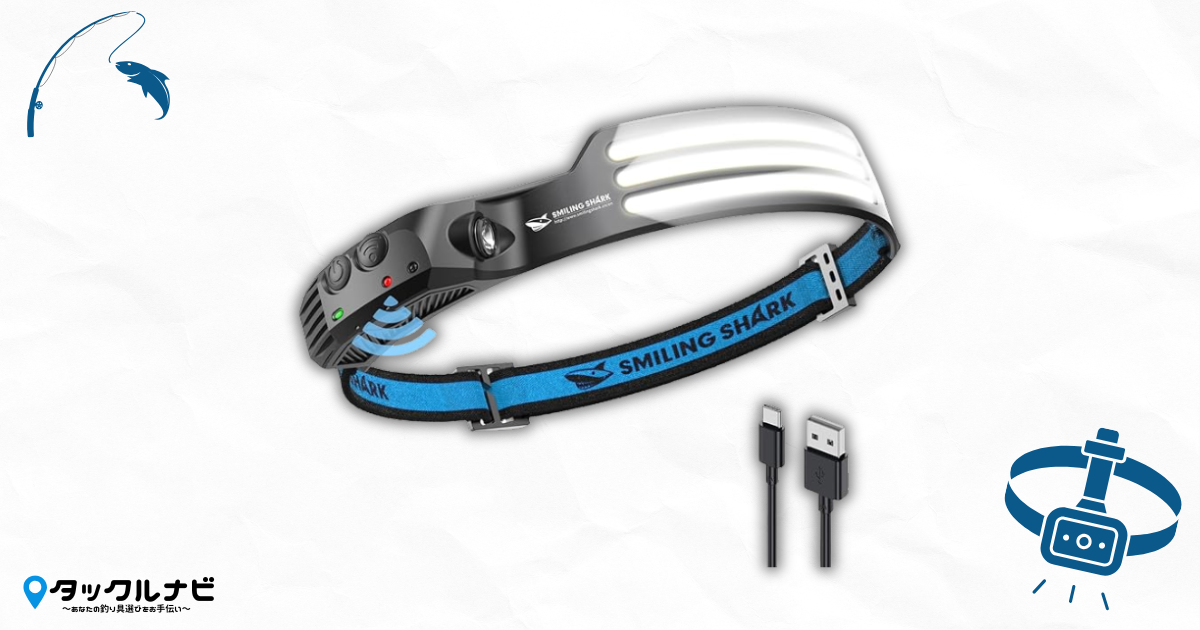 続いてご紹介するのは、手元から広範囲までしっかり照らしてくれ防水性能も高く雨でも安心して使える「Smiling Shark 充電式 LED ヘッドライト」です!