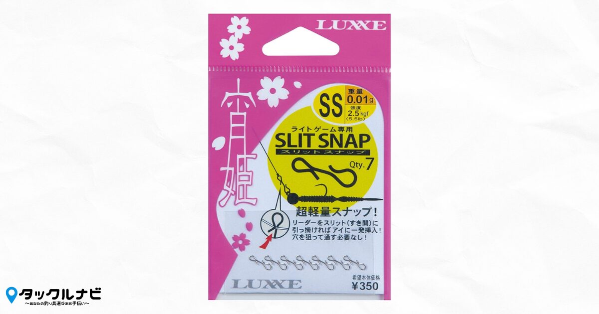 次にご紹介するのはリーダーを掛けてそのまま通せて、暗い場面でも扱いやすい「がまかつ 宵姫 スリットスナップ」です!