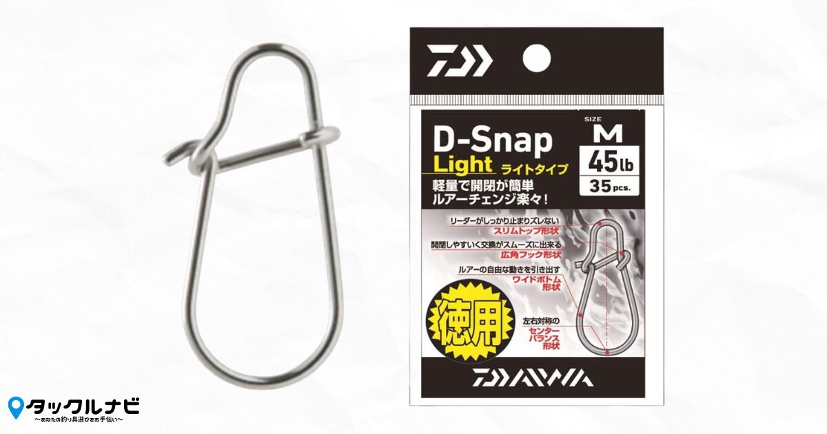 次にご紹介するのは交換がしやすく、ルアーの自然な動きも出しやすい「ダイワ Dスナップライト」です!