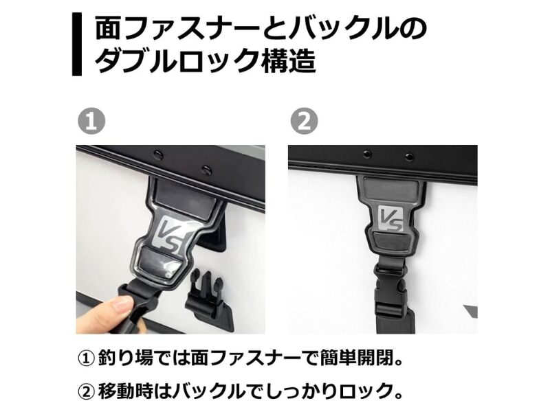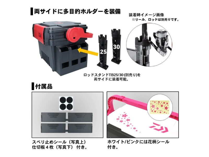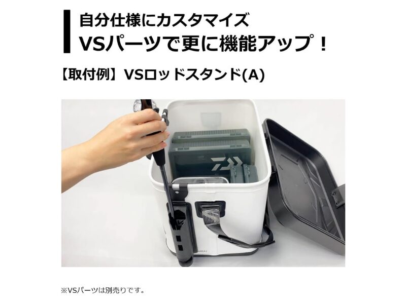 また、別売りの追加パーツに対応していて、自分の釣り方に合わせて使いやすく広げられます。さらに、道具箱類も収まりやすい設計で、外寸は約30×43×30cmと船上で扱いやすい大きさにまとまっています。