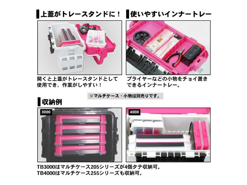 次にご紹介するのは運ぶときに傾きにくい工夫が効いていて、移動が多い釣りでも道具が安定しやすい「TB 3000HS」です!