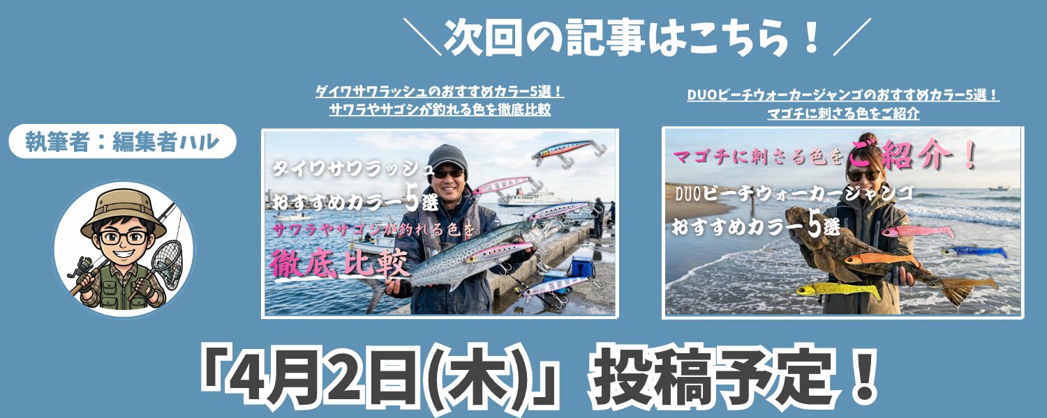今回はDUOビーチウォーカーリンバーのおすすめカラー5選をご紹介していきます。この記事を最後まで読めば初心者でもヒラメやマゴチの釣果が上がるカラーがわかるので、ぜひ読んでください。