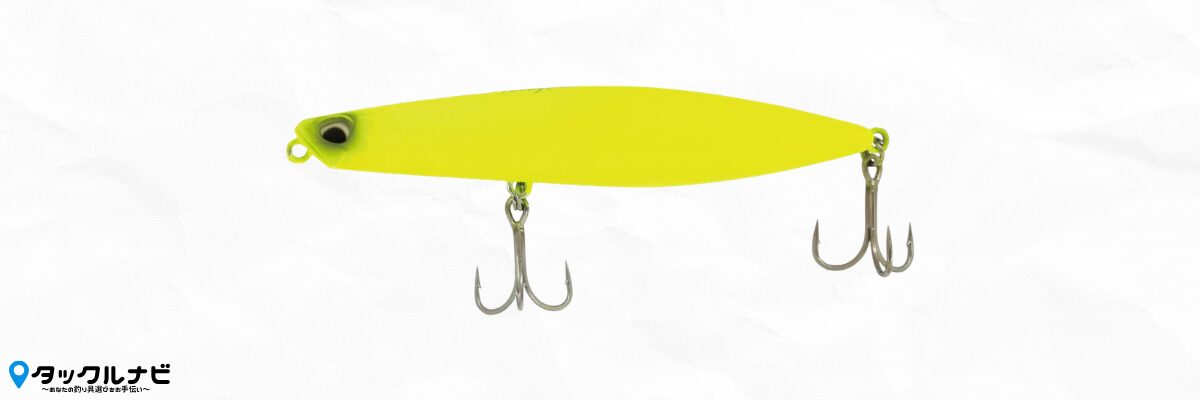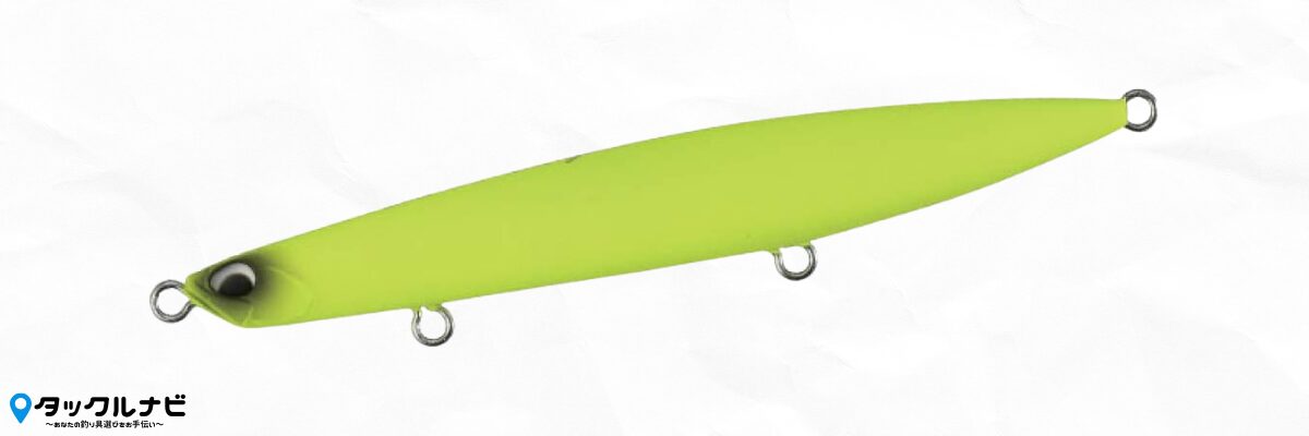 秋のコノシロパターンや、大きなキスを捕食しているような状況で強さを発揮します。ルアーが大きい分、ゆっくりと水中で見せることができ、スレたヒラメが食いつきやすいです。