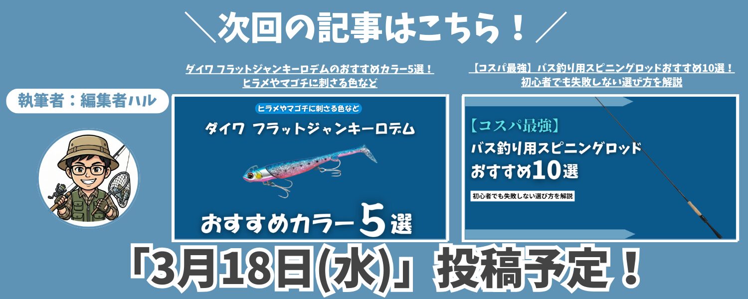 • 派手すぎないのに存在感があるので、反応が弱い日の最初の一投にも使いやすい