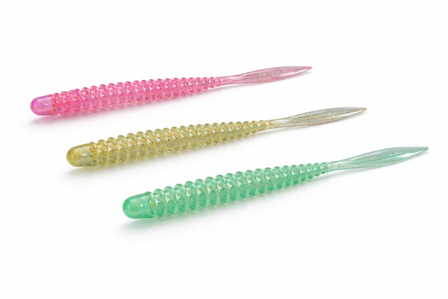 体にある深い溝(リング)が水の抵抗を受けるため、海の中でワームが「フワッ」とゆっくり沈みます。これが、魚がエサを食べる間(ま)を自然に作ってくれます。