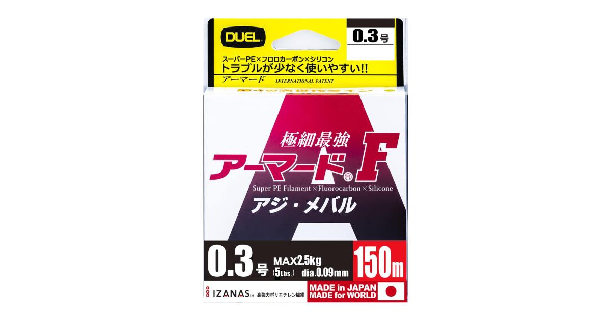 次にご紹介するの初心者でも扱いやすく、頻繁に巻き替えなくても巻き続けられる「DUEL PEライン ARMORED F アジ・メバル 150M 0.3号 O: オレンジ」です!