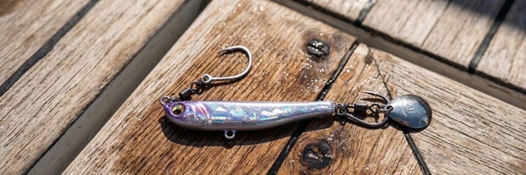 お尻に付いているブレード(金属の羽)が、巻くだけで光を放ちながら回転し、広範囲の魚を呼び寄せてくれます。初心者でも、「釣れる動き」を簡単に再現できる手軽さが最大の魅力です。