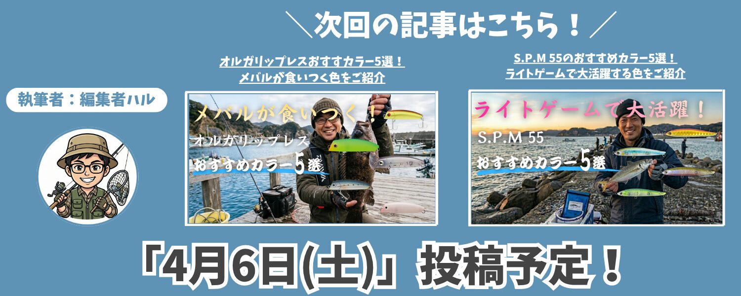 次にご紹介するのは濁りや波のある状況でも遠くの魚に気づかせやすい「HLボラギンクロ」です!