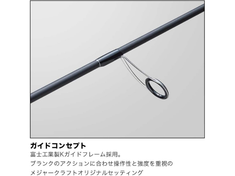 このロッドの特徴は、ブレード付きメタルジグを投げて広く探る釣りに合わせて作られているところです。目安として30〜60gのブレードジグを投げて探るときに手返しよく投げ続けやすい設計です。