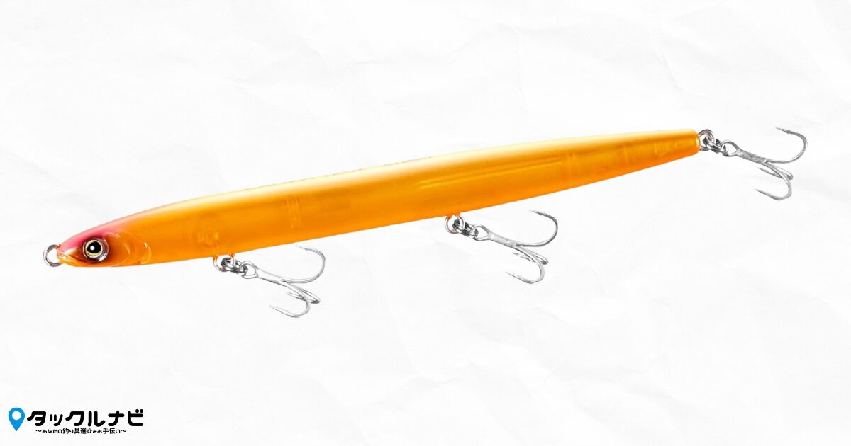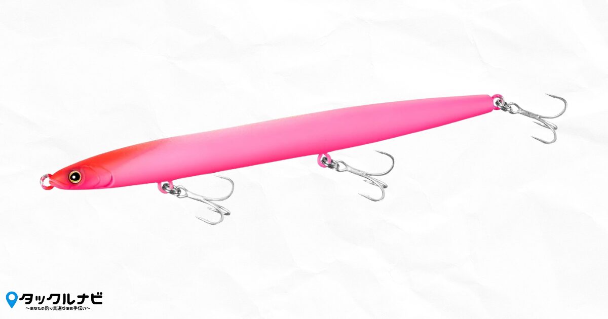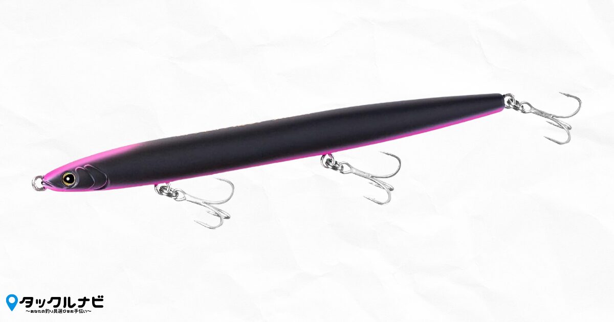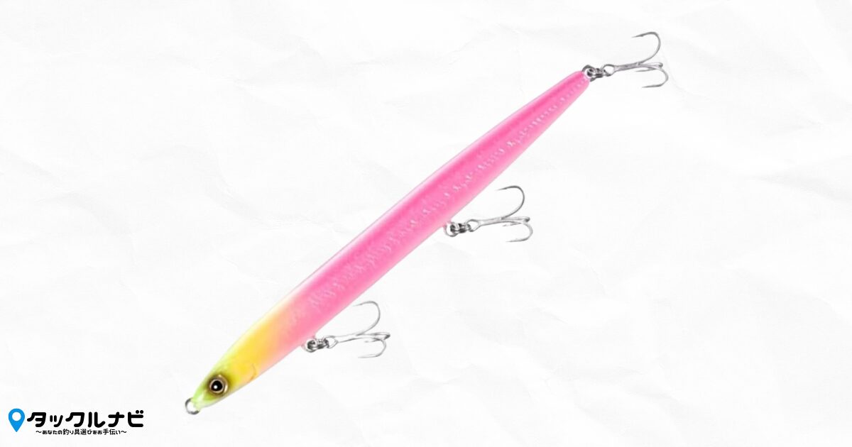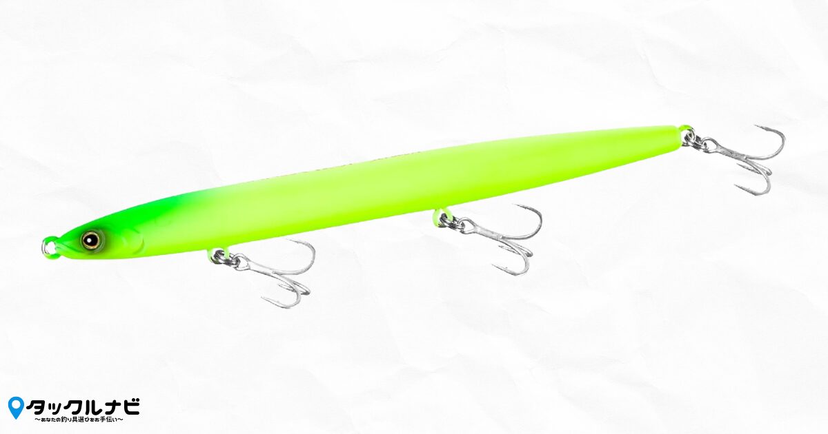 120mmという長さと極限まで絞られた細身のボディは、バチ(ゴカイ)そのものの形を再現しています。シーバスが食べやすい形状のため、フッキング率(針がかり)の向上が期待できます。