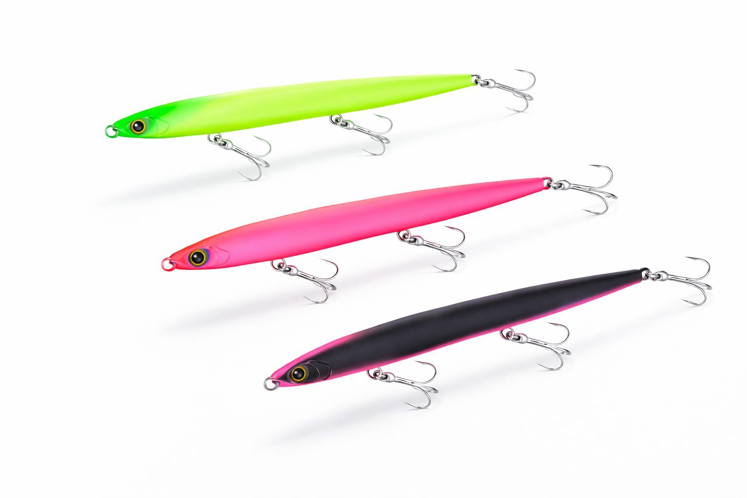 暗い場所や、雨上がりで海が濁っている時は、魚からルアーが見えにくくなります。そんな時は、色の対比で形をはっきり見せる「ブラック系」や、膨張して見える「チャート系・ピンク系」が適しています。