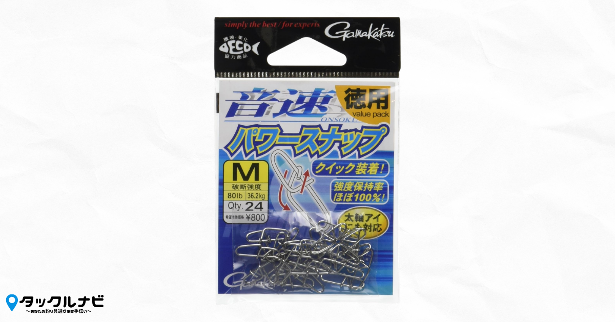 次にご紹介するのは引きの強い魚や重めの釣りでも安心感がある「がまかつ 音速パワースナップ」です!