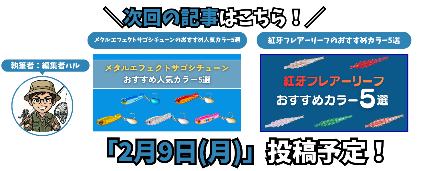 次にご紹介するのは掛けてからの安心感が強く、バラしを減らせる「メジャークラフト レッドバック ベンドゲーム」です!